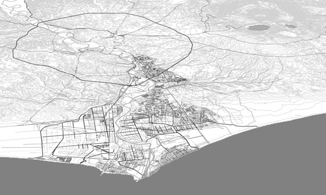 Roma non sfugge a questa problematica. Il punto di vista sommariamente delineato può avere un'applicazione particolarmente felice nel settore di territorio compreso tra la città consolidata e il mare, lungo la direttrice disegnata dalla valle del Tevere e dalla fascia infrastrutturale che l'accompagna, per una concomitanza di favorevoli condizioni: